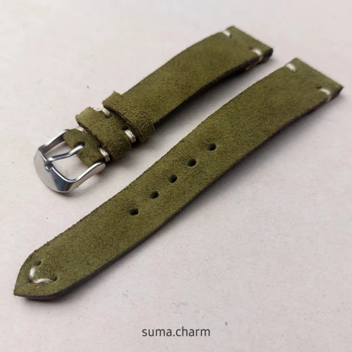 بند ساعت جیر طبیعی /دستدوز /سبز دوخت قهوه ای