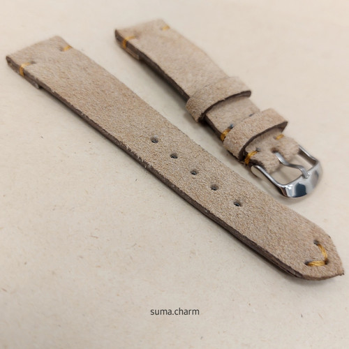 بند ساعت چرم طبیعی جیر رنگ کرمی _اشبالت طبیعی_ دستساز _کد ۴۰۶
