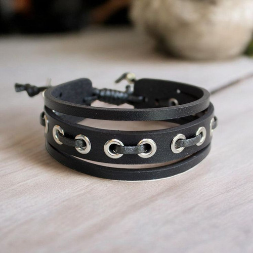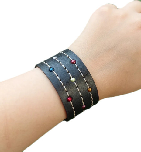 دستبند چرم طبیعی تلفیقی چرم طبیعی و مهره