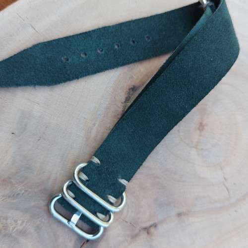بندساعت ناتو چرم طبیعی جیر/سبز