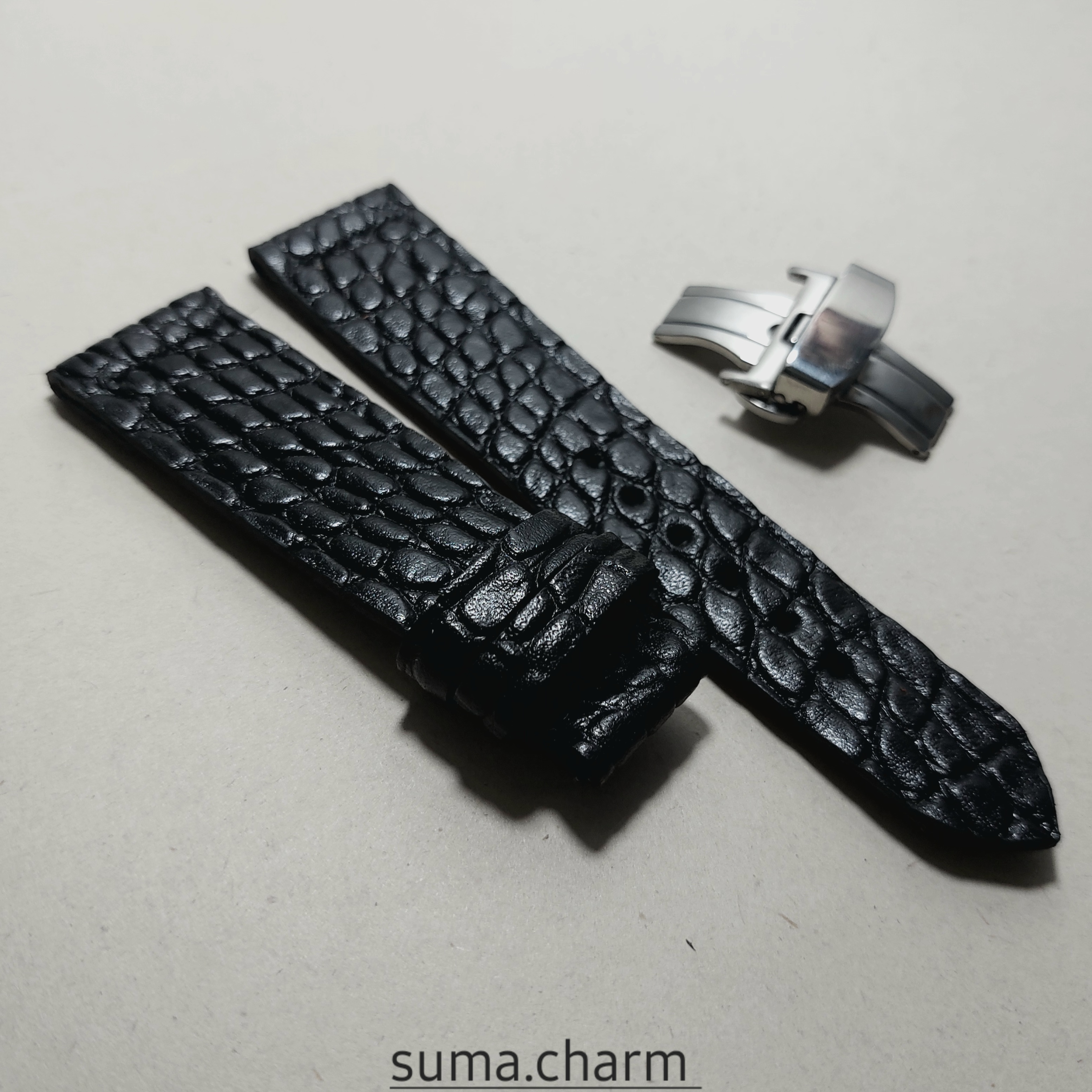 بند ساعت چرم کروکو _رنگ مشکی با قفل پروانه ای