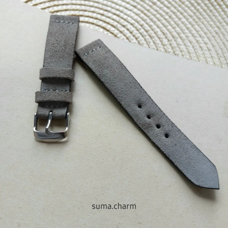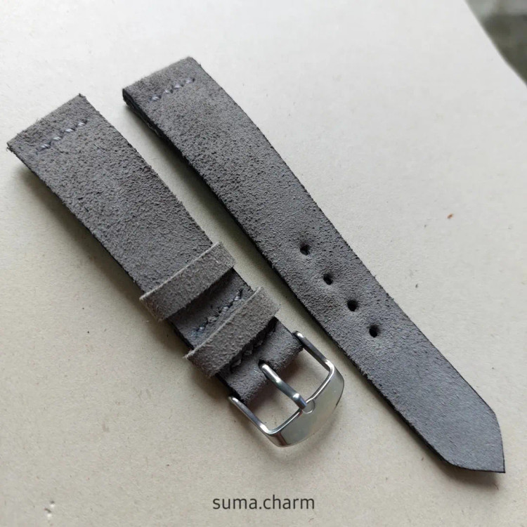 بند ساعت چرم طبیعی جیر (اشبالت) /رنگ طوسی /دستساز