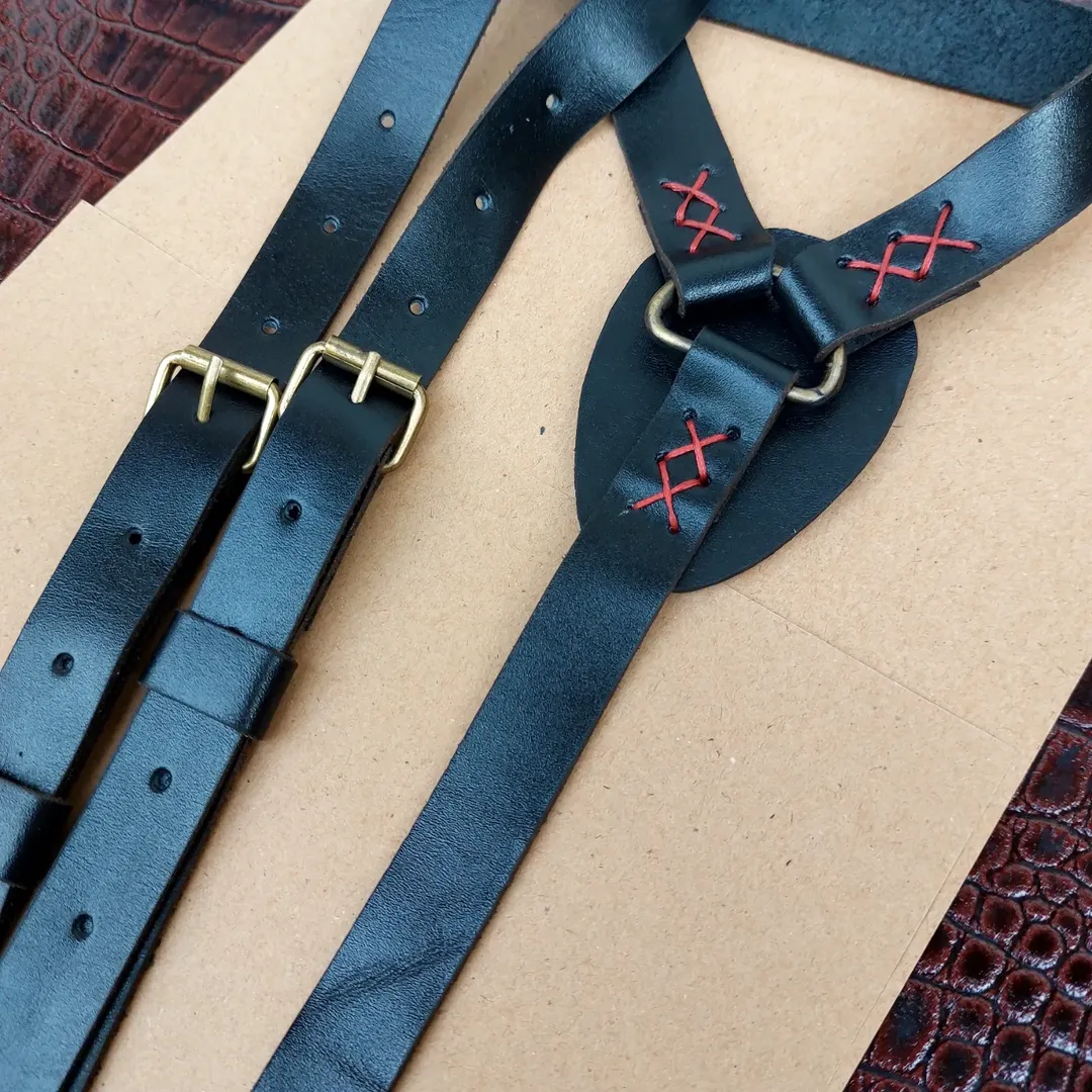 ساسبند چرم طبیعی مشکی دستدوز/ساسپندر/ساسبند مردانه