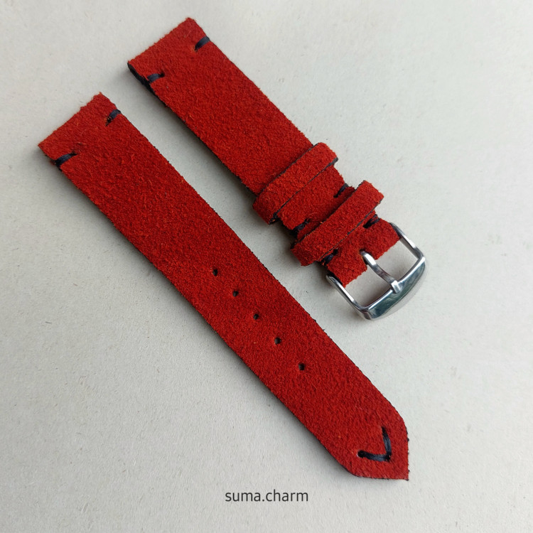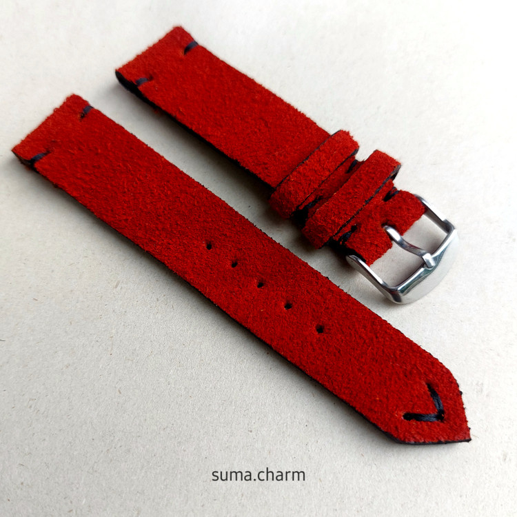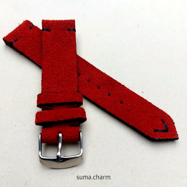 بند ساعت چرم طبیعی جیر /اشبالت طبیعی /قرمز /قرمز مشکی