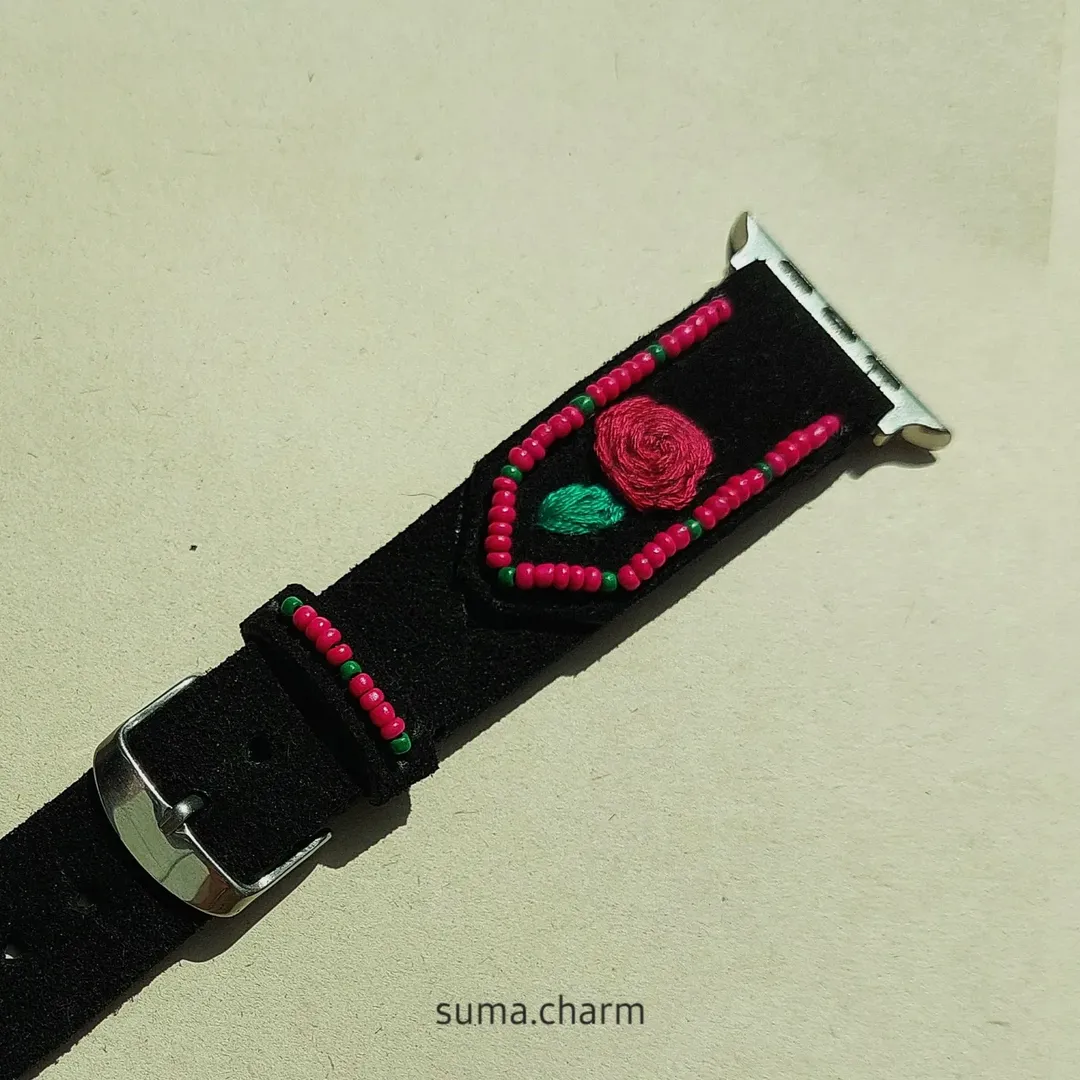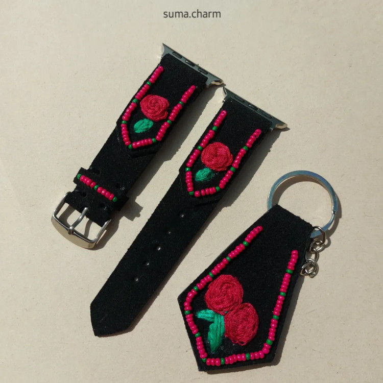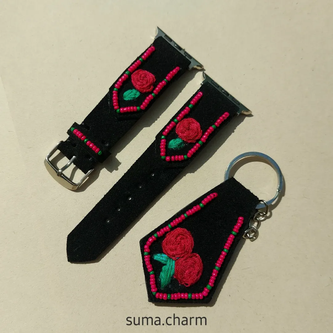 ست بند اپلواچ و جاسوئیچی /چرم طبیعی گلدوزی شده/دستساز _کد ۵۰۴