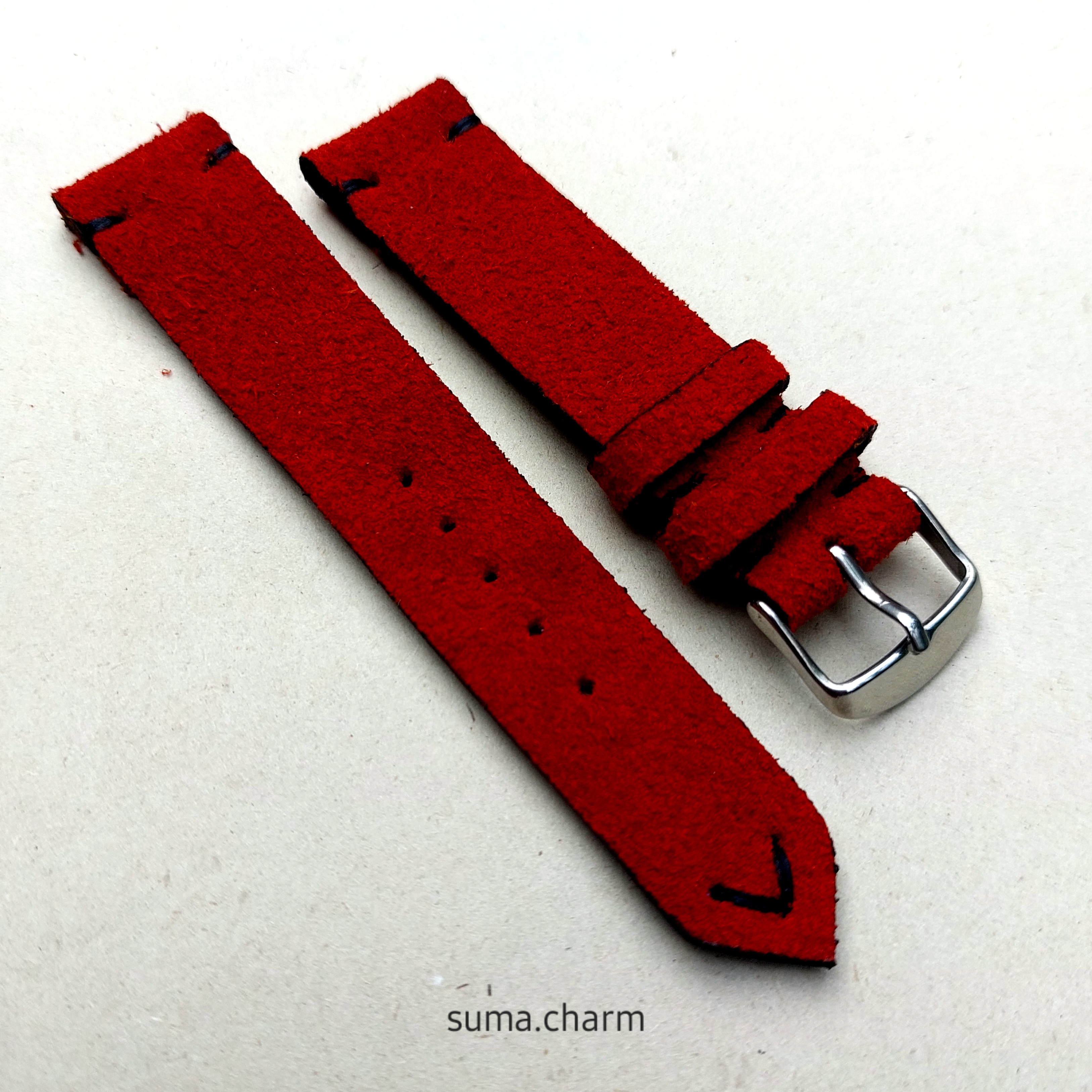 بند ساعت چرم طبیعی جیر /اشبالت طبیعی /قرمز /قرمز مشکی